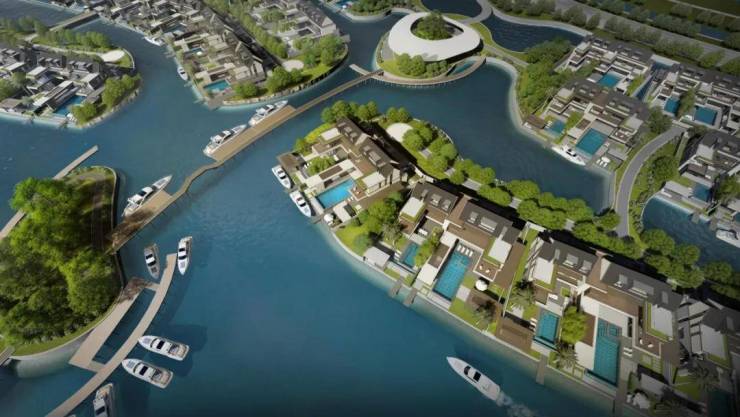 从效果图来看,怕是每家一个码头吧......emmmm即便是十几年前的佘山紫园别墅,小区内引入水系,也做不到家家一个码头.