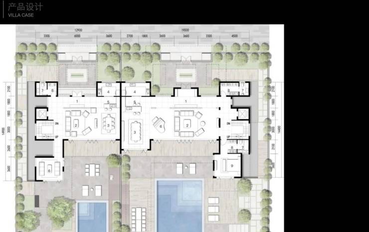 北入户的190+290房型,一层朝南直面庭院和泳池,如果配上整扇的落地玻璃移门......