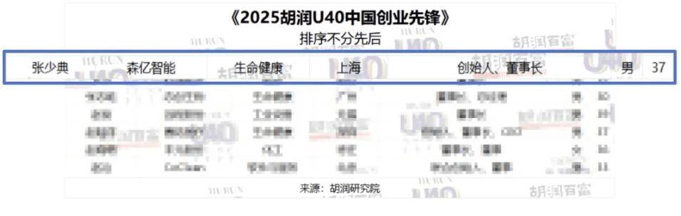 近日,全球最大的创业企业榜单编制机构胡润研究院发布《2025 胡润 U40 中国创业先锋》(Hurun China Under40s 2025),旨在寻找中国 40 岁及以下的创业先锋。森亿智能创始人兼董事长张少典以卓越的创新能力和深远的行业影响力成功上榜。未来,森亿智能将持续践行「最优化每一个医疗决策」的使命,深化人工智能、大模型与医疗领域的融合创新,积极推动医疗数字化转型。