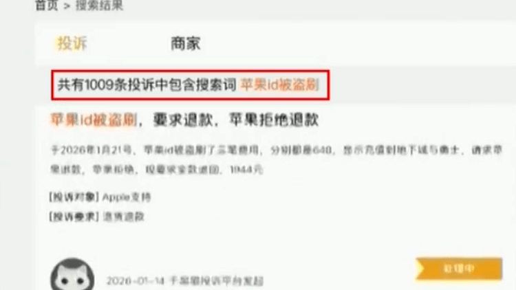 而这些消费者使用的都是苹果手机,在与不法分子沟通过程中,都被诱导提供了苹果应用商店账号和密码。 记者在“黑猫投诉”平台搜索“苹果ID被盗刷”关键词,找到一千多条相关投诉。记者注意到,一些手机用户被盗刷的资金,大多被不法分子用于游戏App充值,盗刷资金往往难以追回。