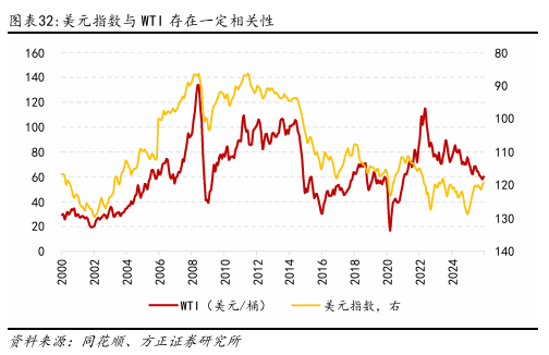 长期以来,美元和油价之间维持了稳定的负相关关系。虽然美元指数与WTI油价存在动态双向影响,但是随着原油金融属性的增强,美元指数对油价的主导作用更强。