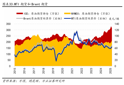 石油期货交易量远超现货,流动性充沛,因而承担了“价格发现”功能。期货价格反过来被用作长期合约或即期交易的定价参考。通俗来讲,油价其实是在期货市场上确定的。其中交易量最大的两大石油期货分别是:WTI期货(NYMEX WTI Crude Oil Futures)和布伦特期货(ICE Brent Crude Futures),分别扮演着美国和全球性基准原油合约的角色。同时,由于中东地区是国际原油供给的核心板块,在此背景下,迪拜商品交易所推出的阿曼原油期货虽属区域性定价基准、尚未形成全球影响力,但凭借区域市场的重要性,通常也与布伦特、WTI 一并被归为全球三大主要原油期货品种。