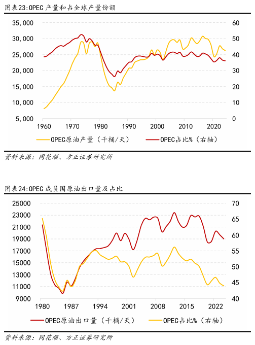 此后,随着俄罗斯产量回升和美国页岩油的商业化,OPEC市场份额有所下降,但在面对重大冲击(如新冠疫情)时仍通过协调产量稳定市场,展现其作为“供应稳定器”的核心作用。