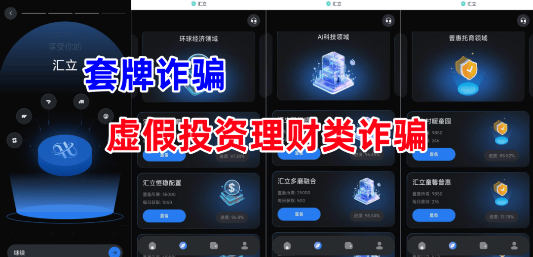 不法分子冒充香港“汇立集团”的名义,打着“人工智能”“AI+”等旗号,制作散布涉诈APP,虚构推广“普惠托育”“环球经济”“AI科技”“医疗科技”“多元资产”等高额返利理财项目。